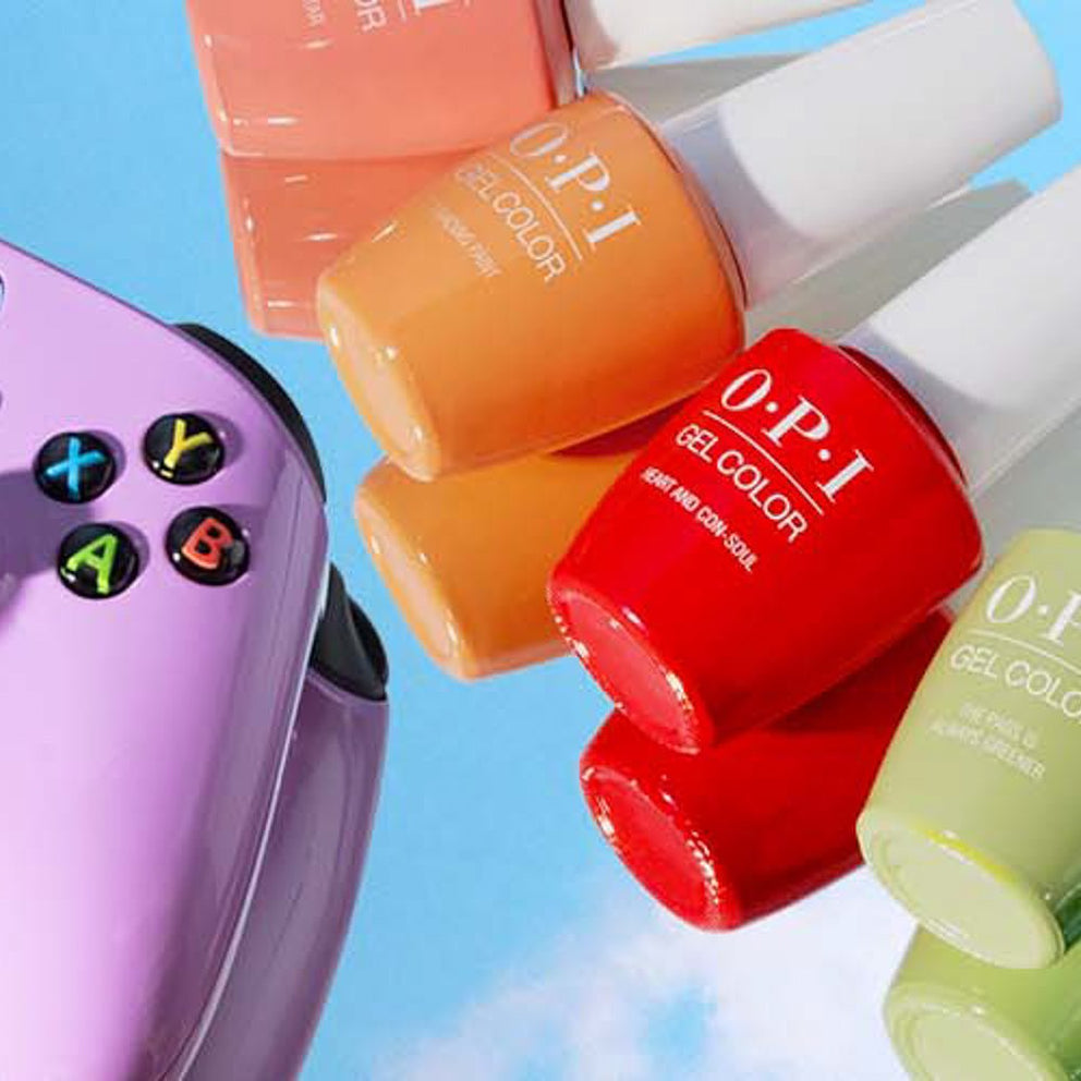 OPI's Spring 2022 collection was designed in partnership with Xbox, aiming to bring you a fun palette of bright, vibrant rainbow colors. “GelColor Soak-off Gel Lacquer” is a fine, brush-on formula designed for high performance and a glossier finish than regular nail polish. Did you know that an OPI GelColor manicure lasts up to 3 weeks? Yes, yes: 3 weeks! If you have a vacation planned, you're always on the run, or it's difficult for you to visit the salon frequently, this is THE gel nail polish for you. The main difference between gel nails and a regular manicure is curing: between each coat you need to cure the color and set the gel nail polish by placing your nails under a LED light designed for this purpose. The durability of a gel nail polish manicure lies in the application. It is therefore essential to do it properly. Method of use: Lightly sand the surface of the nails with a sanding block, then clean your hands well. Apply a nail primer, such as OPI Bond Aid. Apply a bonding base coat, e.g. Stay classic, and cure for 30 seconds in the Dual Cure LED lamp. Apply the color of your choice, and cure for 30 seconds in the Dual Cure LED lamp. Apply a second coat, and cure as well. Apply the chosen top coat, and cure for 30 seconds in the Dual Cure LED lamp. Wipe your nails with an alcohol wipe, and that's it! Your manicure will last several weeks!