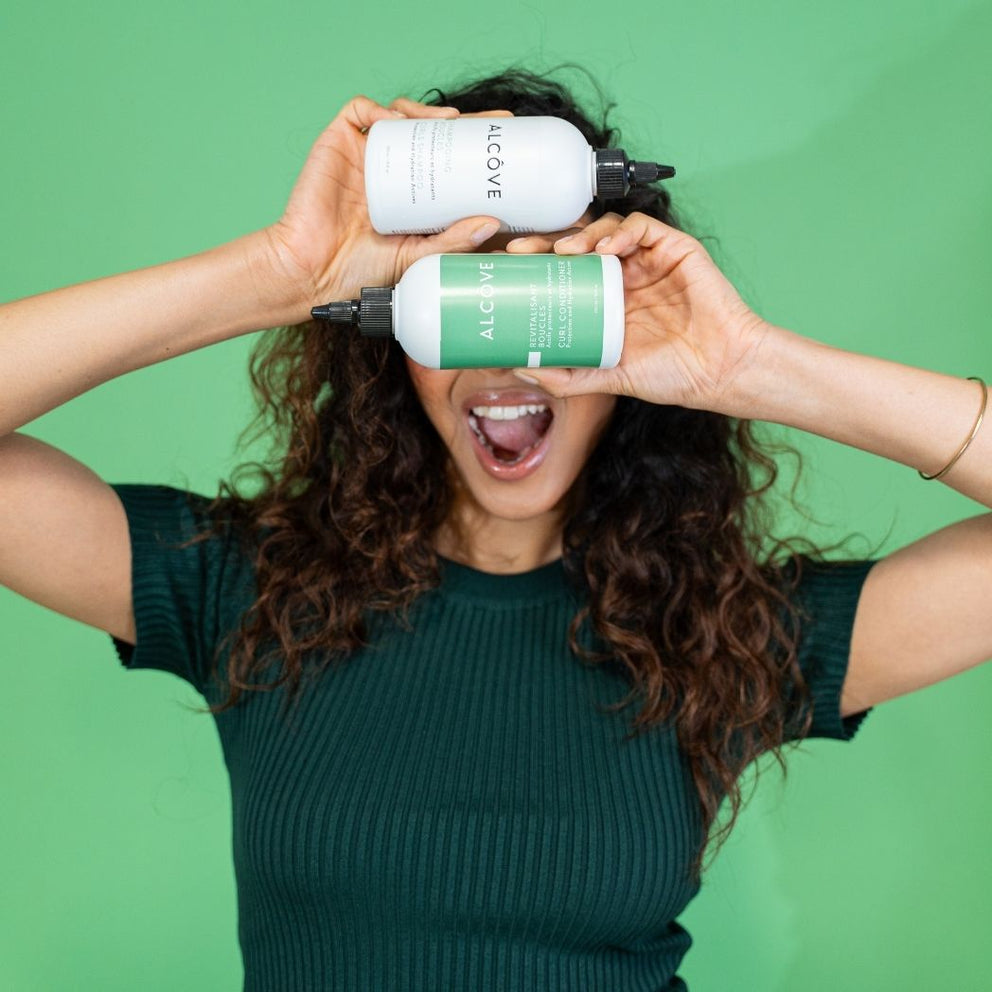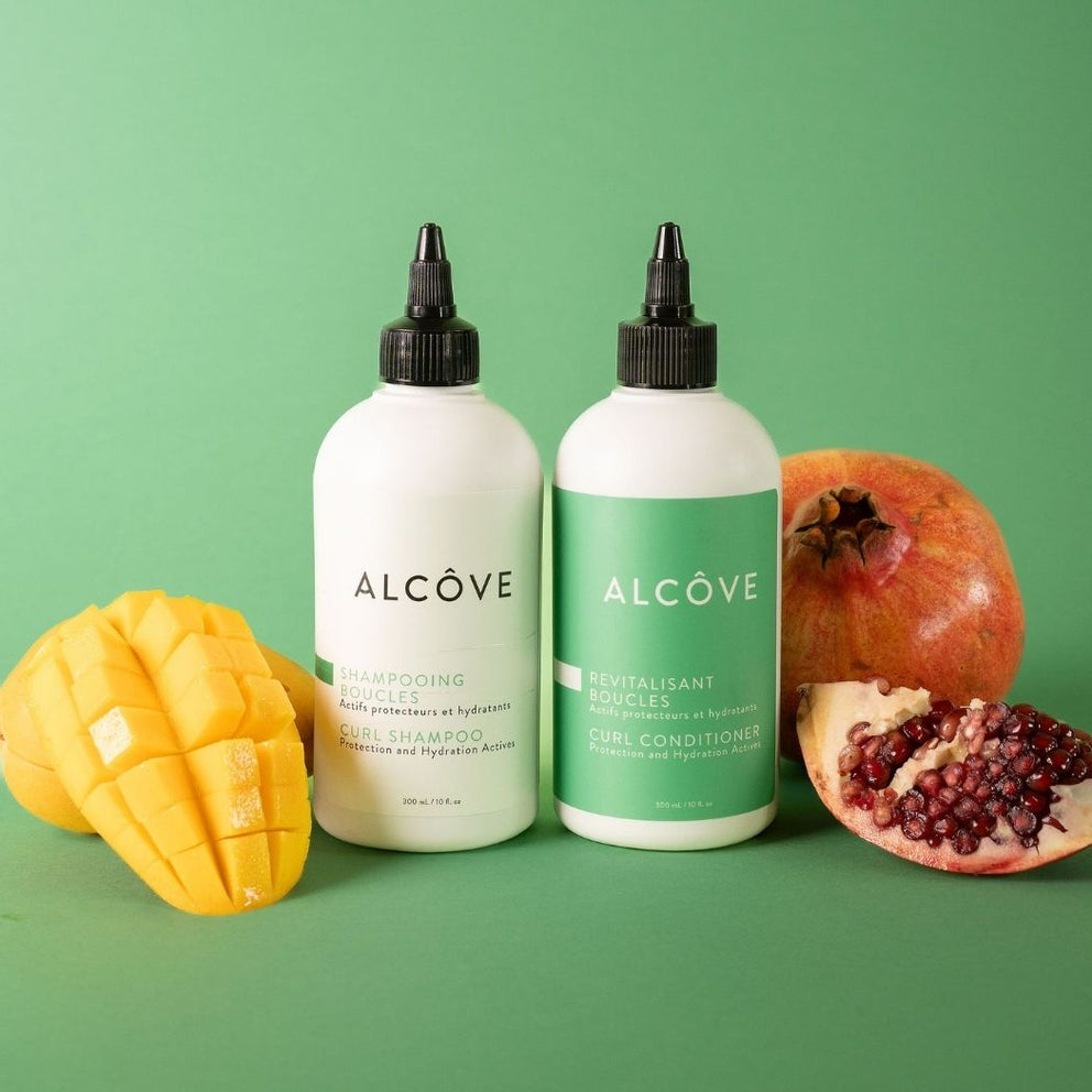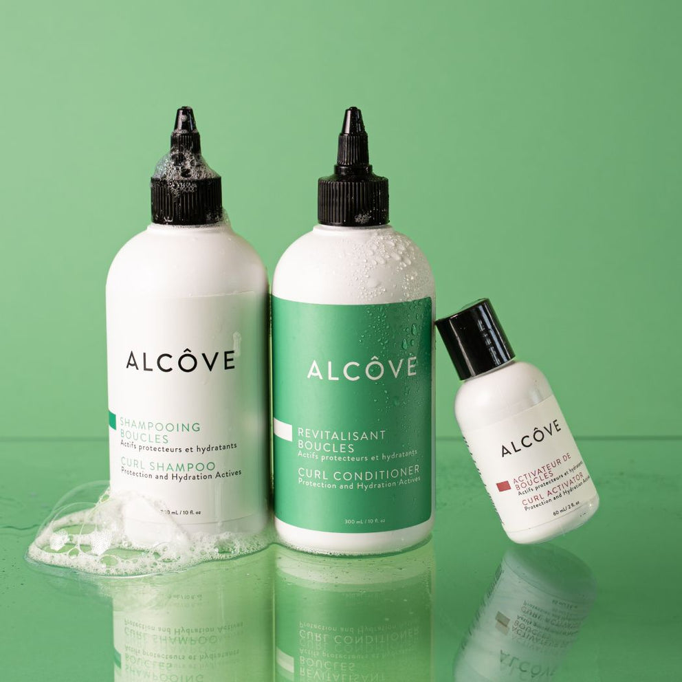Apply Curl shampoo to wet hair. Gently massage the scalp to emulsify and activate the lather. Massage the roots for 1 to 2 minutes to remove residue, then rinse. Repeat these steps if necessary. Follow with Alcôve's Curl Conditionner.