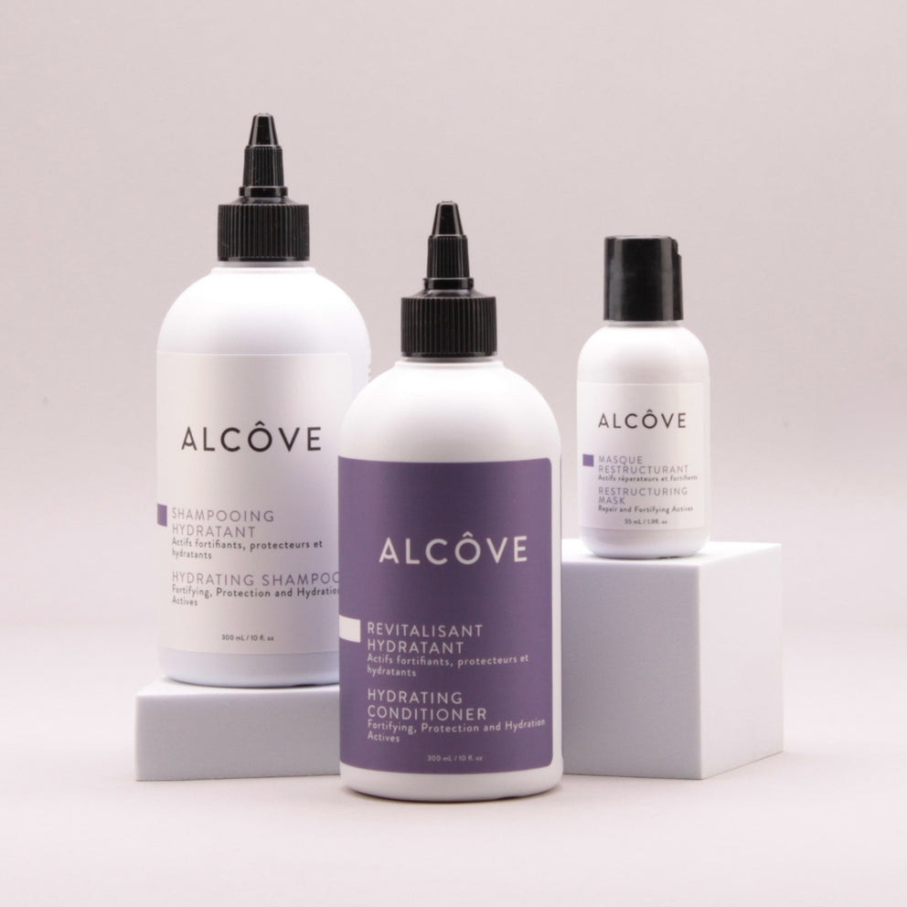 The Alcove Rescue Kit is a complete three-step routine designed to hydrate, repair, and revive damaged hair. The Hydrating Shampoo gently cleanses while respecting the scalp’s balance, the Conditioner nourishes and smooths without heaviness, and the Restructuring Mask delivers an intensive boost of strength and restoration. Used together, they leave hair soft, shiny, and full of vitality from root to tip.