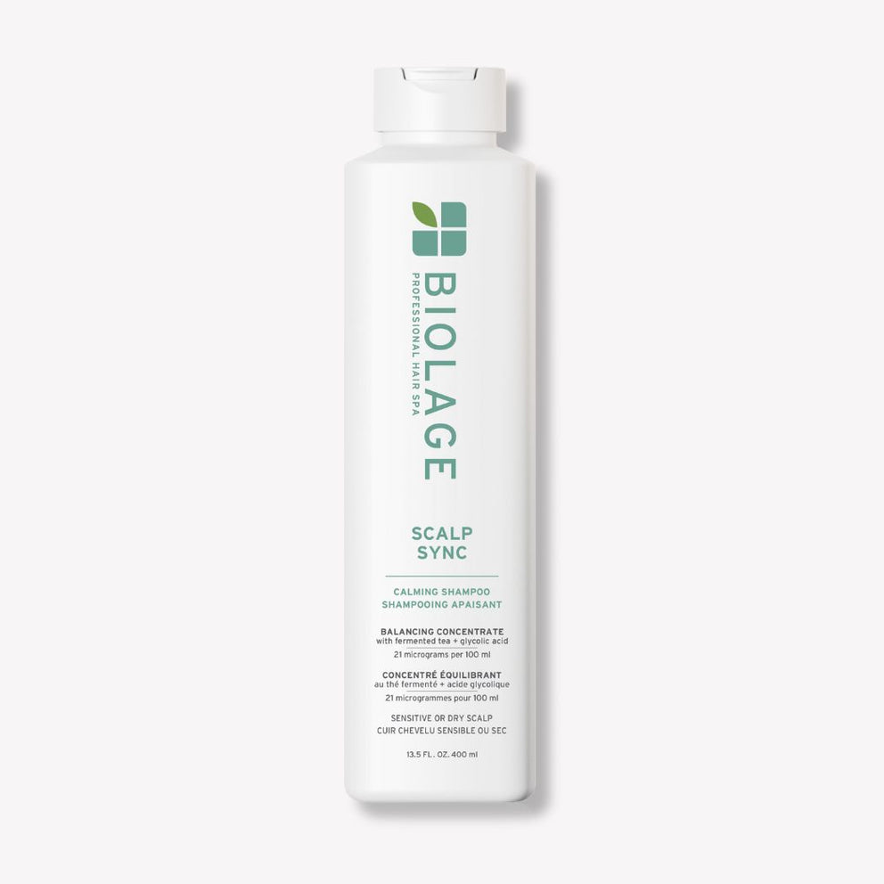 Biolage Scalp Sync Calming Shampoo is a gentle shampoo for dry, sensitive scalps, infused with fermented tea and glycolic acid. It gently conditions hair, making it smoother and more manageable, giving a healthier-looking scalp. Free from paraben, silicones and mineral oil