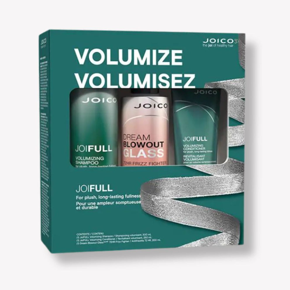 Voluminous, bouncy, full-bodied hair is now a dream come true for fine, thin hair. With these powerful products, you'll have long-lasting, full, lush, easy-to-style locks that come to life, without the sticky, crunchy residue typical of most volumizing products. This set contains: - 1 x Joifull Shampoo 300 ml - 1 x Joifull Conditioner 250 ml - 1 x Dream Blowout Glass Anti-Frizz Spray 200 ml