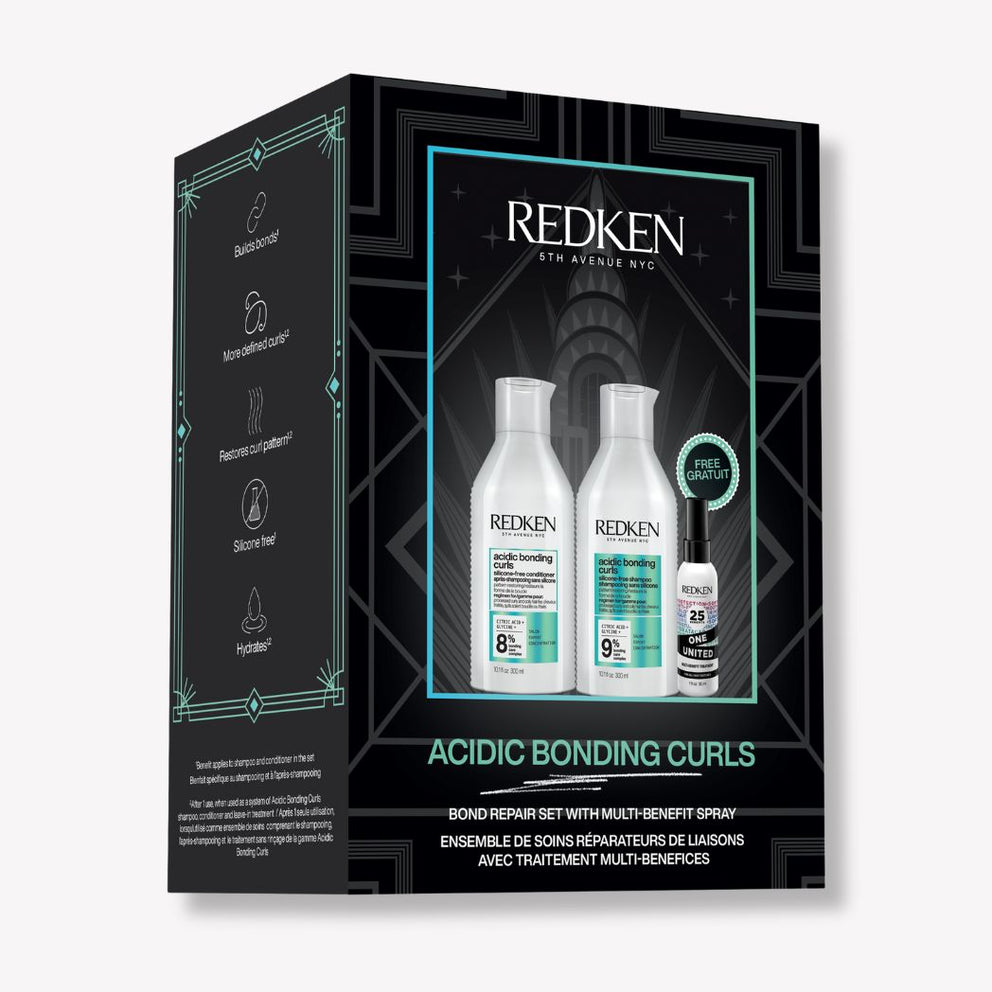 Acidic Bonding Curls hair care regimen bonds and restores curl structure. Curl Stylers define, moisturize and control frizz for 72 hours. Formulated without sulfates, silicones or parabens, these professional salon systems are ideal for wavy, curly and frizzy hair. Set includes: 1 x Acidic Bonding Curls Shampoo 300 ml 1 x Acidic Bonding Curls Conditioner 300 ml 1 x One United Treatment 150 ml