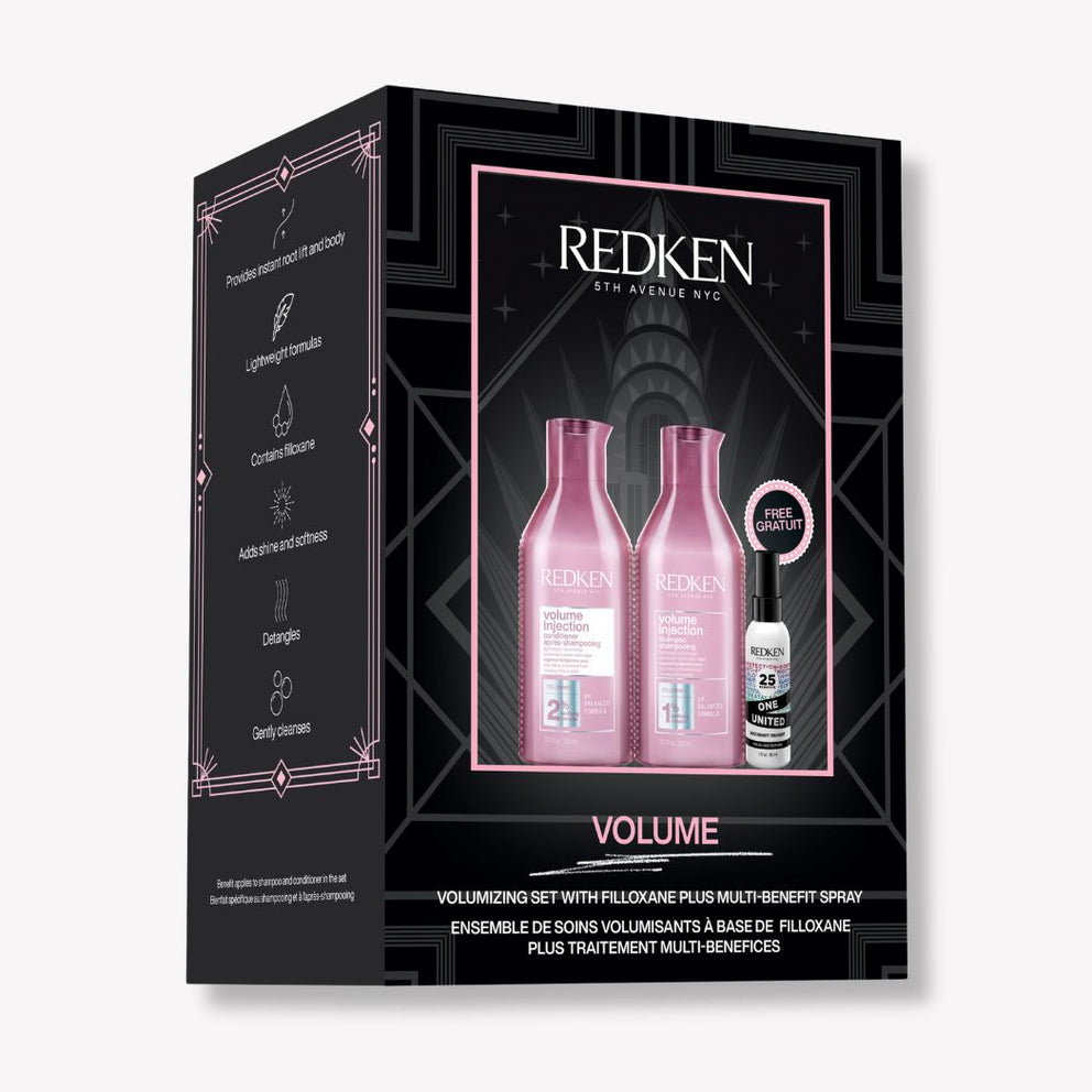 Inject volume into your routine with Redken's Volume Injection collection, which gently cleanses and conditions weightlessly while adding volume to hair from root to tip. Set includes: 1 x Volume Injection Shampoo 300 ml 1 x Volume Injection Conditioner 300 ml 1 x One United Treatment 150 ml