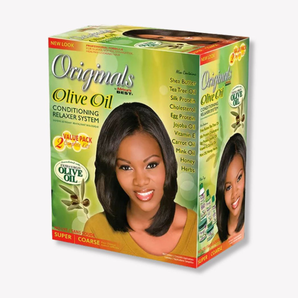 For silky, soft, smooth and healthy-looking hair, the Organic Olive Oil Straightening System by Africa's Best offers superior care combining hydration and deep conditioning. Enriched with the benefits of extra-virgin olive oil, this relaxer helps repair, rebuild and restore hair, strengthening its structure while adding shine, softness and strength. Thanks to the unique combination of extra-virgin olive oil and an organic conditioner, your hair will look healthier, softer and perfectly smoothed.