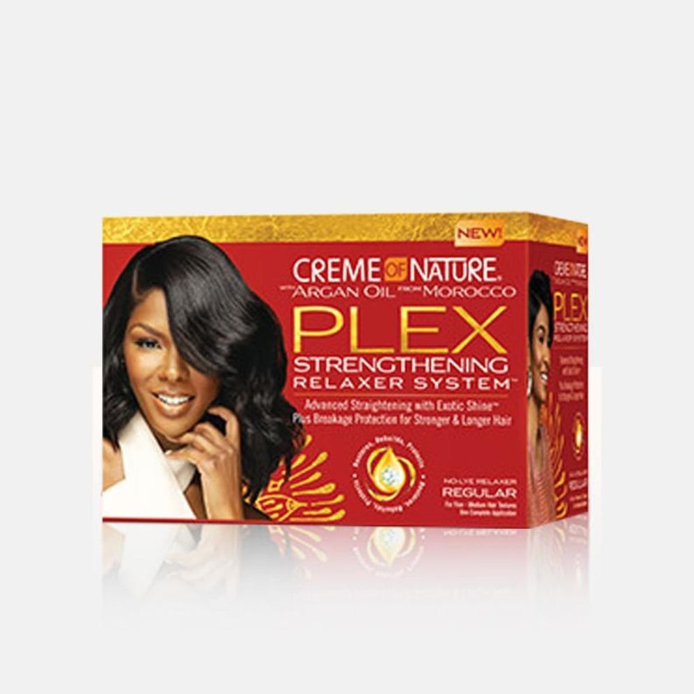 The first and only relaxer system with Strengthening PLEX Technology from Creme of Nature, that helps to revitalize the hair structure, make hair stronger and leaves hair looking healthy with body & brilliant shine.