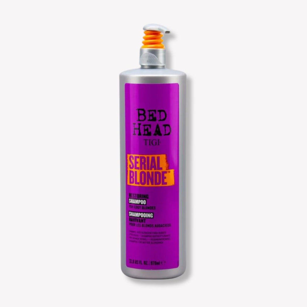 Bed Head's Serial Blonde shampoo is a color-enhancing formula designed with professionals to revive chemically treated blonde hair. Inspired by the famous Dumb Blonde, it deeply cleanses while moisturizing, repairing and softening the hair fiber. Thanks to its fibrous active ingredients and hydrolyzed keratin, it helps restructure damaged hair, reduce frizz and improve manageability. Its Conditioning Complex leaves hair soft, shiny and supple, while benzophenone protects against UV rays to preserve color radiance. The result: luminous, healthy, smooth blond hair, enveloped in an exotic tropical fragrance.