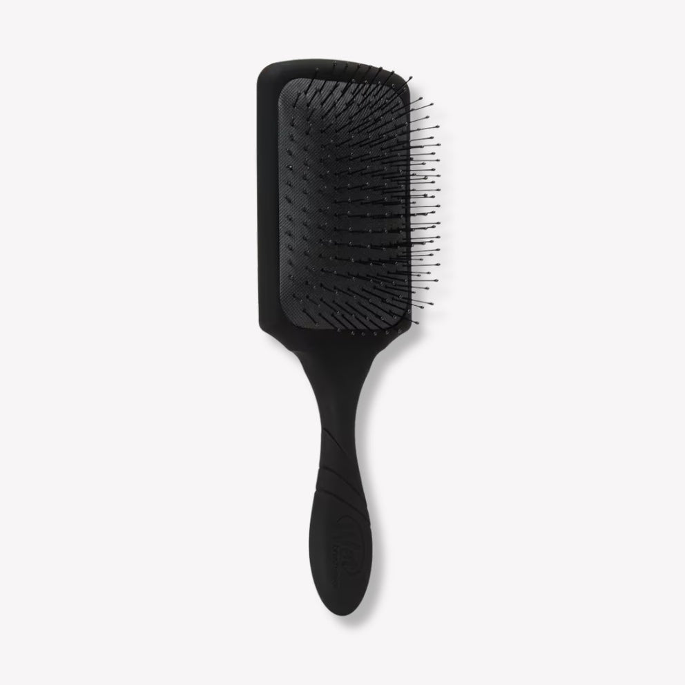 The Pro Paddle Detangler makes detangling faster and gentler with its ultra-soft IntelliFlex bristles that flex through tangles on wet or dry hair, reducing breakage by over 45% and effort by 55%. Its ergonomic EasyGrip handle with finger rests ensures comfort and control, even with wet hands, while the AquaVent design allows quick water drainage and cleanup. With an expanded cushion area, it covers more hair at once for effortless, time-saving detangling.