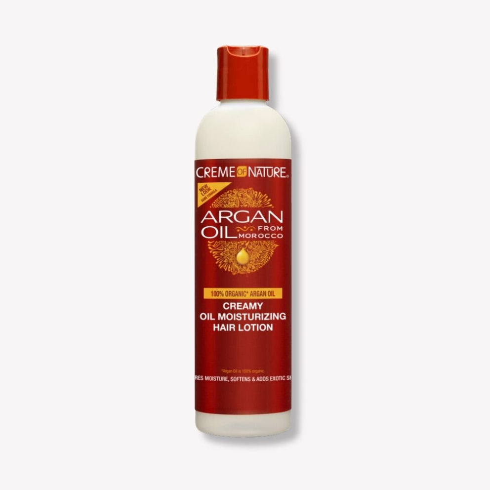 Infused with certified natural argan oil from Morocco, Creamy Oil Hydrating Hair Lotion is an oil-rich formula that restores moisture, deeply nourishes, protects against heat damage and fights frizz. Perfect for natural hair, braids, ponytails, buns, straight hair and extensions.