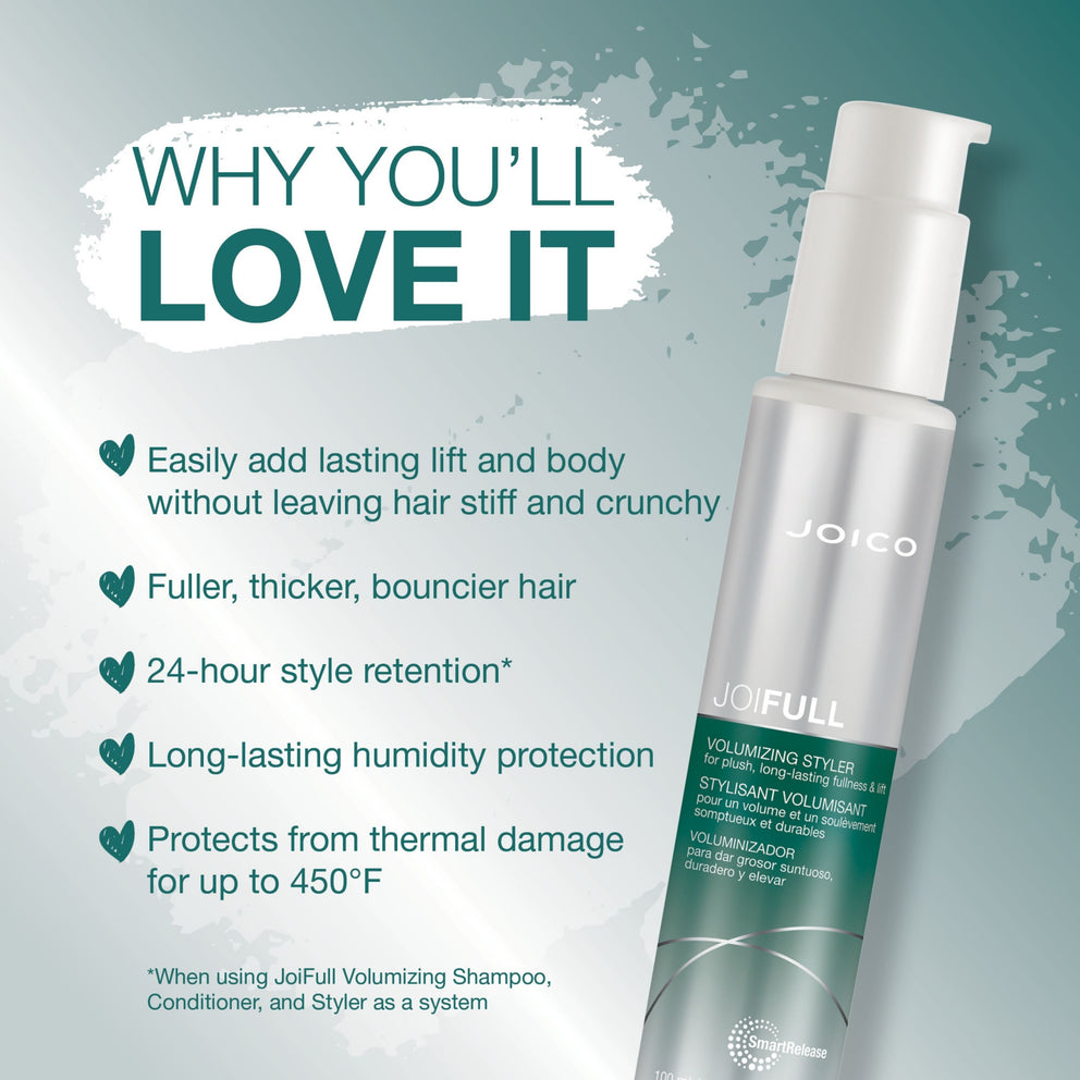 Infuses your hair with body, vitality and volume while avoiding the sticky, tight residue of typical volumizers. Benefits from both the unique slipperiness of an airy cream and the shaping power of a jelly; this hybrid instantly transforms fine hair into full, luxurious, natural-looking manes