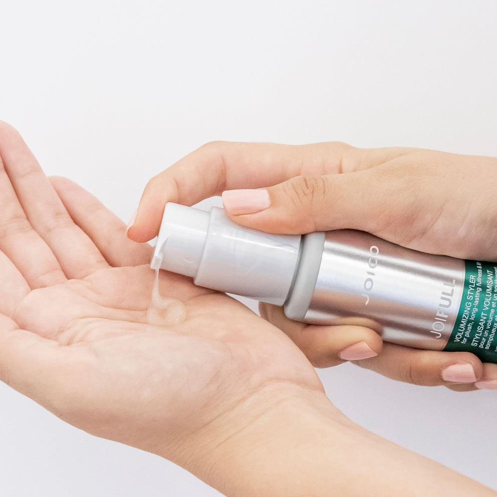 Apply 1 or 2 pumps to hands, distribute evenly through hair, then dry with hairdryer to activate volume and hold.