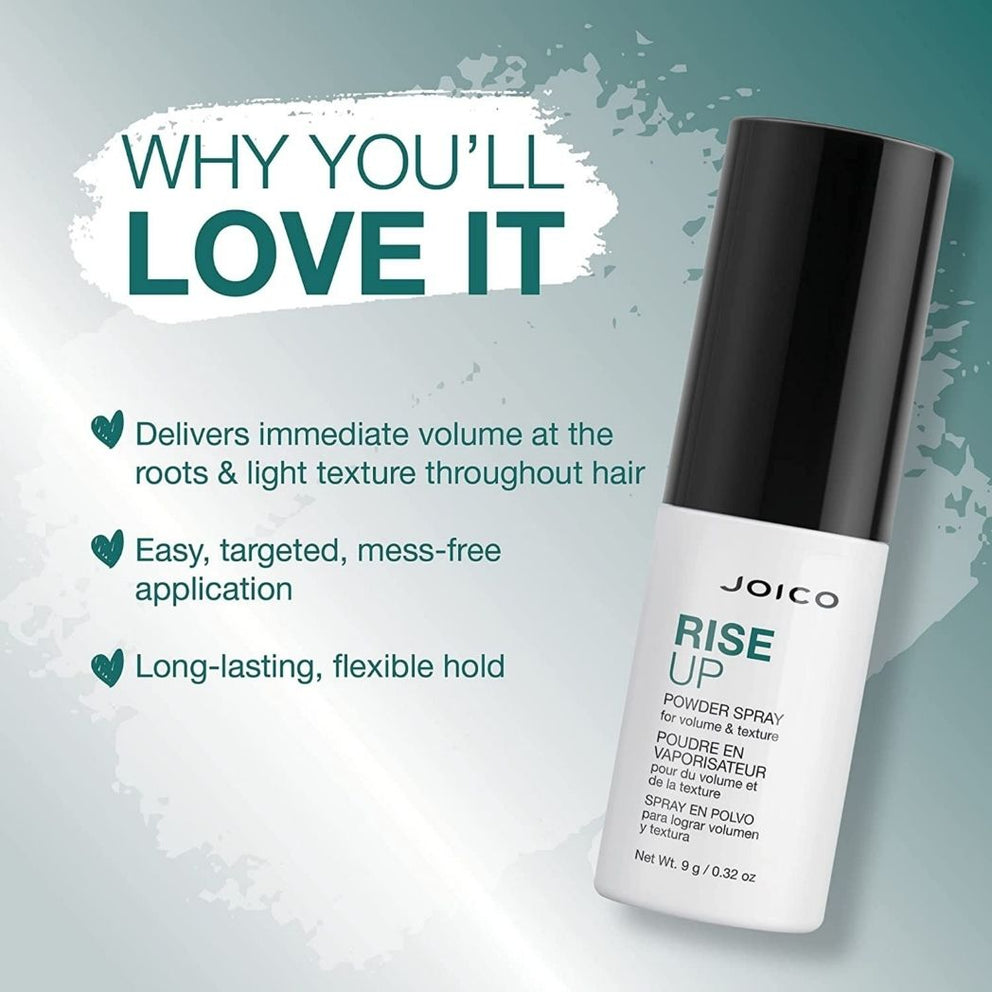 Need a little pick-me-up? Joico's RiseUp spray powder revives lifeless hair in no time! Offering immediate volume at the roots and light texture on the rest of the hair, plus protection against pollutants, RiseUp boosts volume quickly and easily.