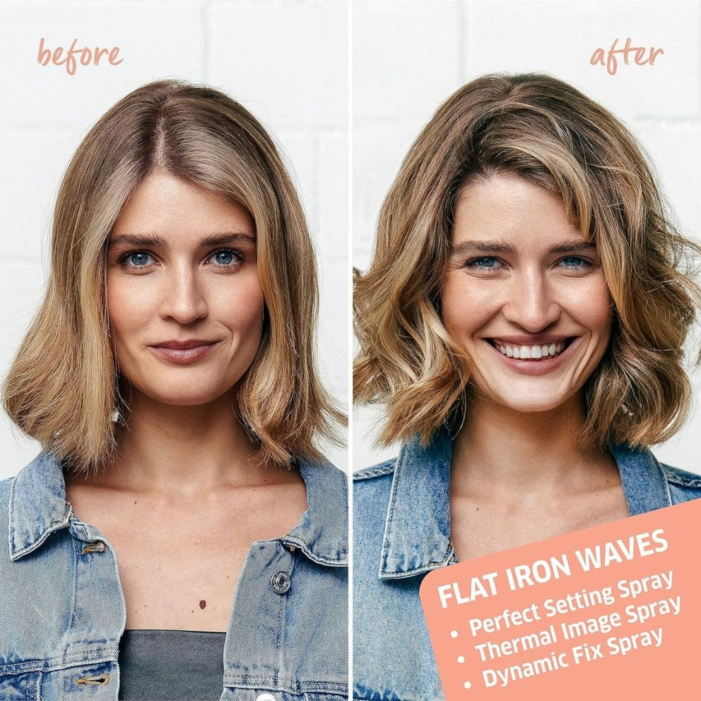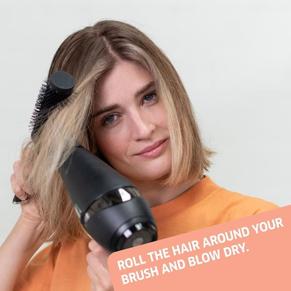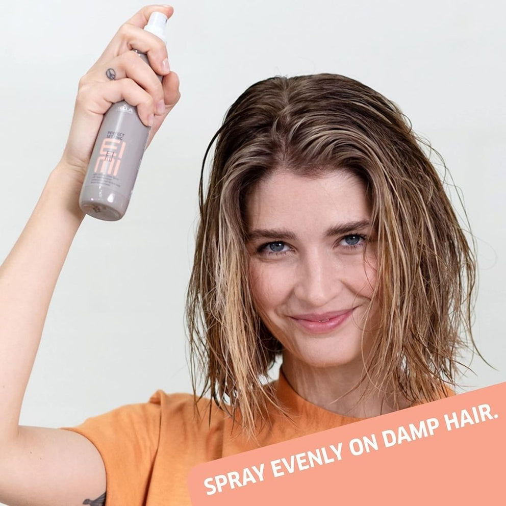 Evenly spray on damp hair with EIMI Perfect Setting spray. Wrap hair around the brush in sections, then dry with a hair dryer.