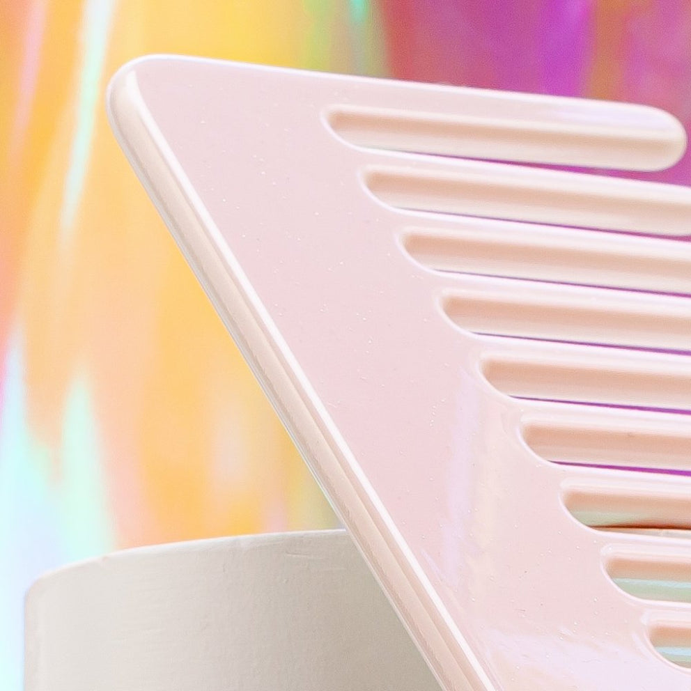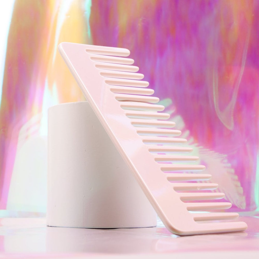 The cutest multi-use comb! Pink with soft shine on one side, cream on the other. 3 Perfect uses: - For curls with wide teeth. - For applying mask in the shower - To undo your curls with an iron and give them an "I woke up" look like this"