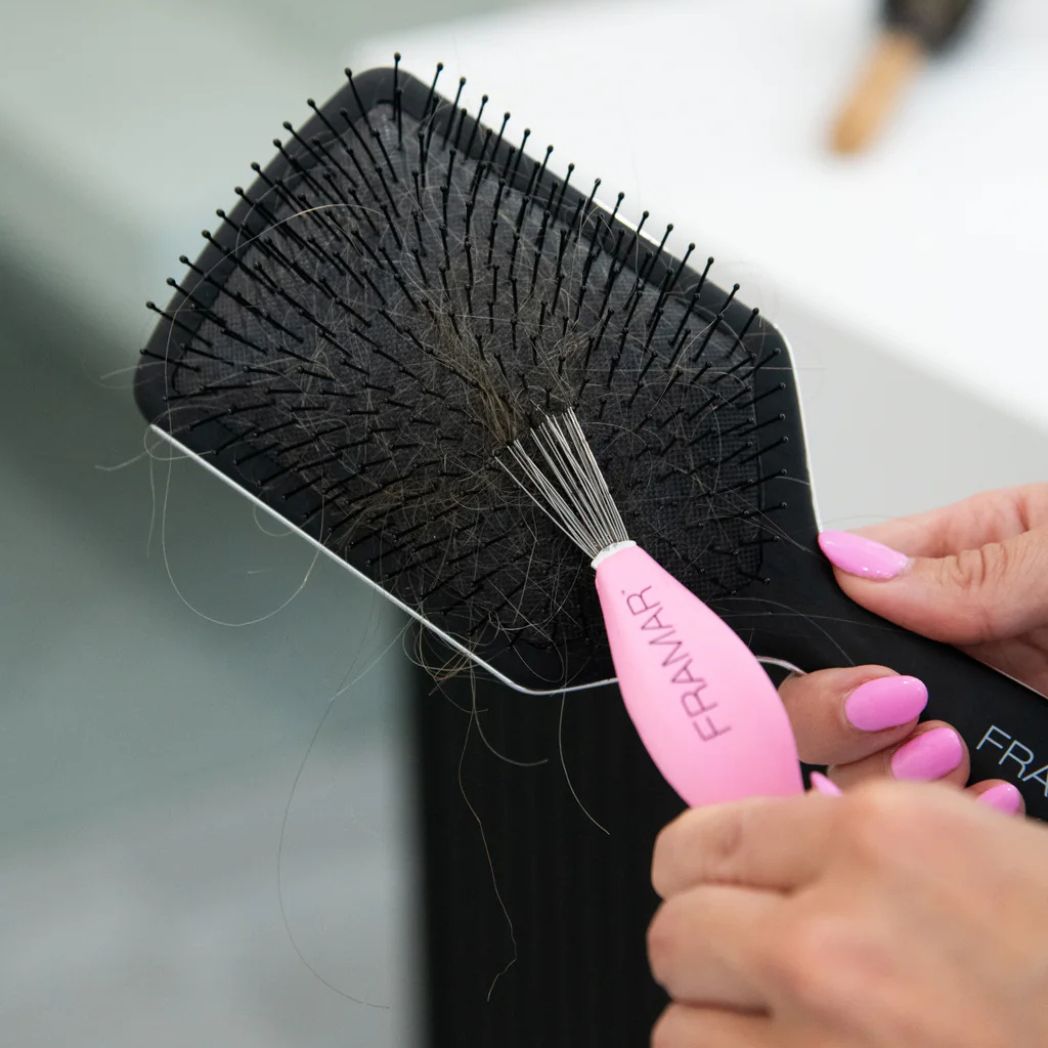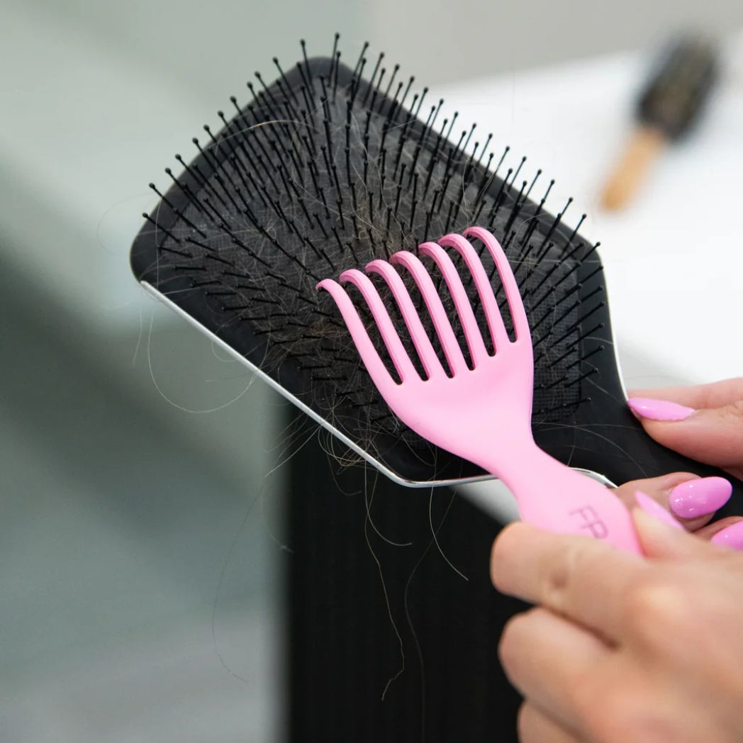 Meet your brush’s new best friend! This chic, dual-sided cleaner quickly removes trapped hair, lint, and buildup to keep your brushes fresh and ready to style. With a claw edge for sweeping out debris and a metal comb for tighter bristles, it works on all brush types—prolonging their life and keeping your blowouts flawless.
