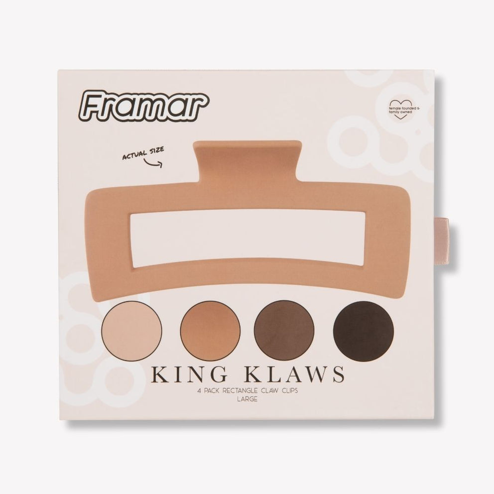 Framar's neutral hair clips are the must-have accessory for all your hairstyles. Suitable for all hair types, they let you create an infinite number of styles. With their rubberized texture, powerful metal spring and small inner prongs, these claw clips are designed to keep your styles in place all day long. Ideal for thick, curly hair, King Klaws, with their 5-inch length, easily tame even the most unruly manes. Available in four gorgeous nude shades, they'll make your hair shine at the heart of your look.