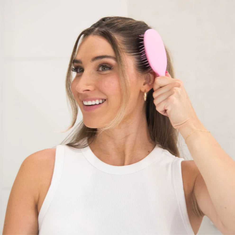 Brush wet or dry hair with ease. This brush effortlessly detangles even the most stubborn knots and is suitable for all hair types, including extensions and wigs. *Do not use with a hair dryer.