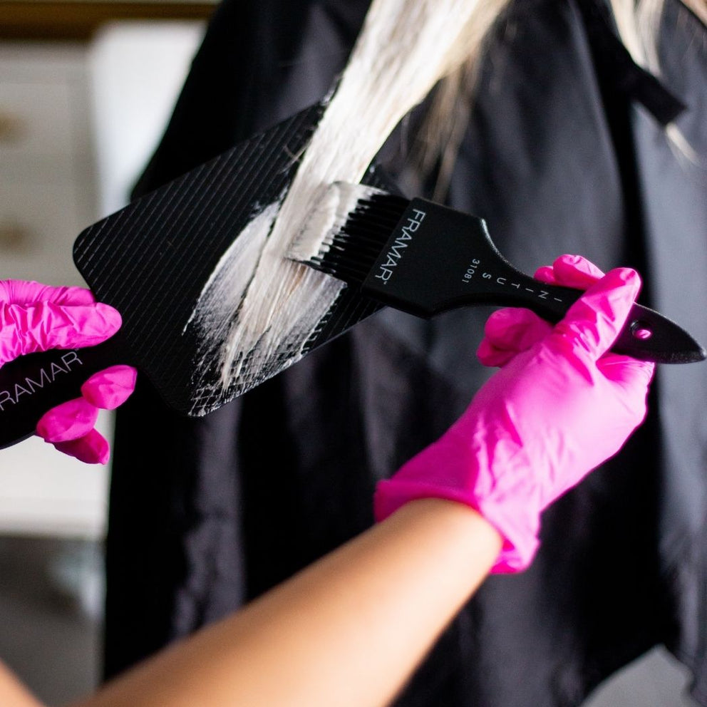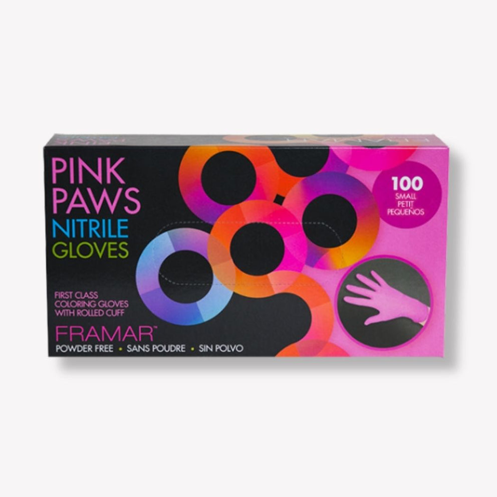 These premium-quality pink hair coloring gloves are designed to withstand tweezers! Powder-free, these hair- and hand-friendly gloves are made of tough, high-quality nitrile. Their stretchy material offers a perfect fit for all types of hands. Sold in boxes of 100, they're the ideal ally for your coloring sessions.