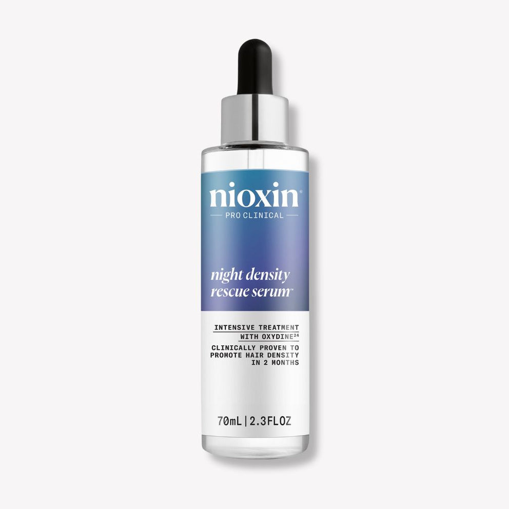 To experience the full benefits of the hair density serum, gently massage two to four drops of Night Density Rescue directly onto your scalp. Do not rinse. For best results, incorporate your preferred Nioxin System Kit regimen.