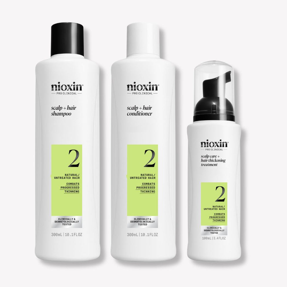 Nioxin System 2 is a complete hair care range specially formulated for natural to visibly thinning hair. Consisting of a shampoo, conditioner and treatment, System 2 aims to gently cleanse, moisturize, strengthen hair resilience, improve the texture of fine hair and promote hair density. It is specially designed to create an optimal environment on the scalp, stimulate hair growth and maintain stronger, denser, more resilient hair. System 2 is particularly suited to people with natural, slightly thinning hair.