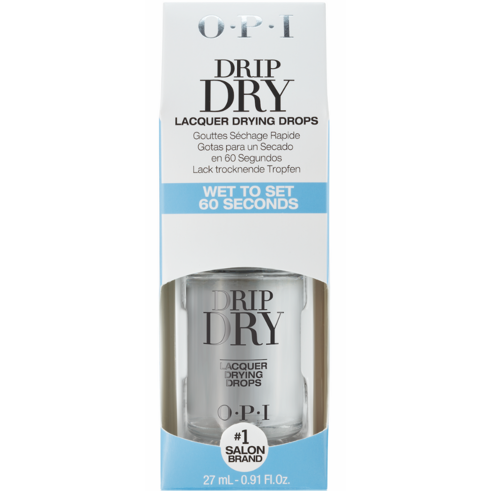 Le vernis est sec au toucher en une seule minute - entièrement sec en cing minutes! Faciles à utiliser, ces gouttes nourrissent également les cuticules grâce à une dose apaisante de jojoba et de vitamine E