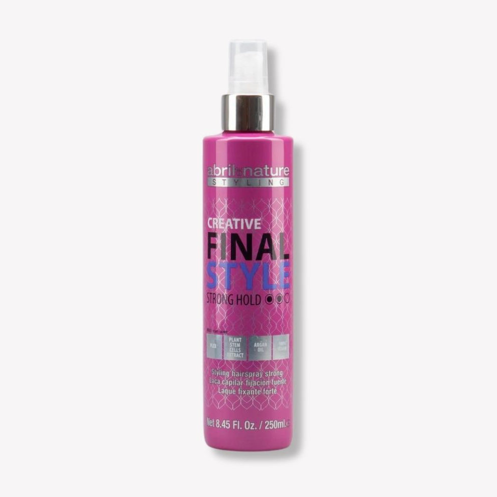 Sculptez, fixez et sublimez vos coiffures avec le Fixatif Final Style Tenue Ferme d’Abril et nature — la laque professionnelle non aérosol qui combine performance, soin et élégance. Conçue pour offrir une tenue longue durée et un fini naturel, elle permet de modeler facilement toutes les coiffures, qu’elles soient lisses, bouclées ou structurées, tout en protégeant vos cheveux de la chaleur et de l’humidité. Sa formule innovante sans résidus crée un film léger et flexible qui maintient la coiffure sans alourdir ni figer la fibre capillaire. Le Fixatif Final Style Tenue Ferme offre également une protection thermique complète contre les sèche-cheveux, fers à lisser ou à boucler, tout en luttant efficacement contre les frisottis et l’humidité. Grâce à l’huile d’argan naturelle, vos cheveux restent doux, brillants et souples, même après un coiffage intensif. Résultat : une fixation parfaite, un toucher soyeux et une coiffure impeccable tout au long de la journée.