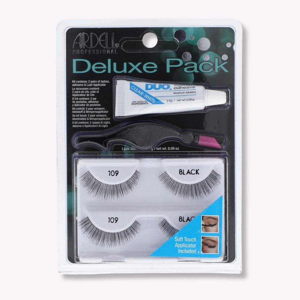 Tout ce dont vous avez besoin pour de superbes cils! Disponibles dans un ensemble tout comprit! Cet ensemble de cils Ardell Deluxe comprend notre adhésif pour cils DUO le plus vendu au monde et 2 paires de cils naturels en bande. Et pour rendre les choses encore plus faciles, il comprend aussi notre nouvel applicateur de cils doux au toucher indispensable!