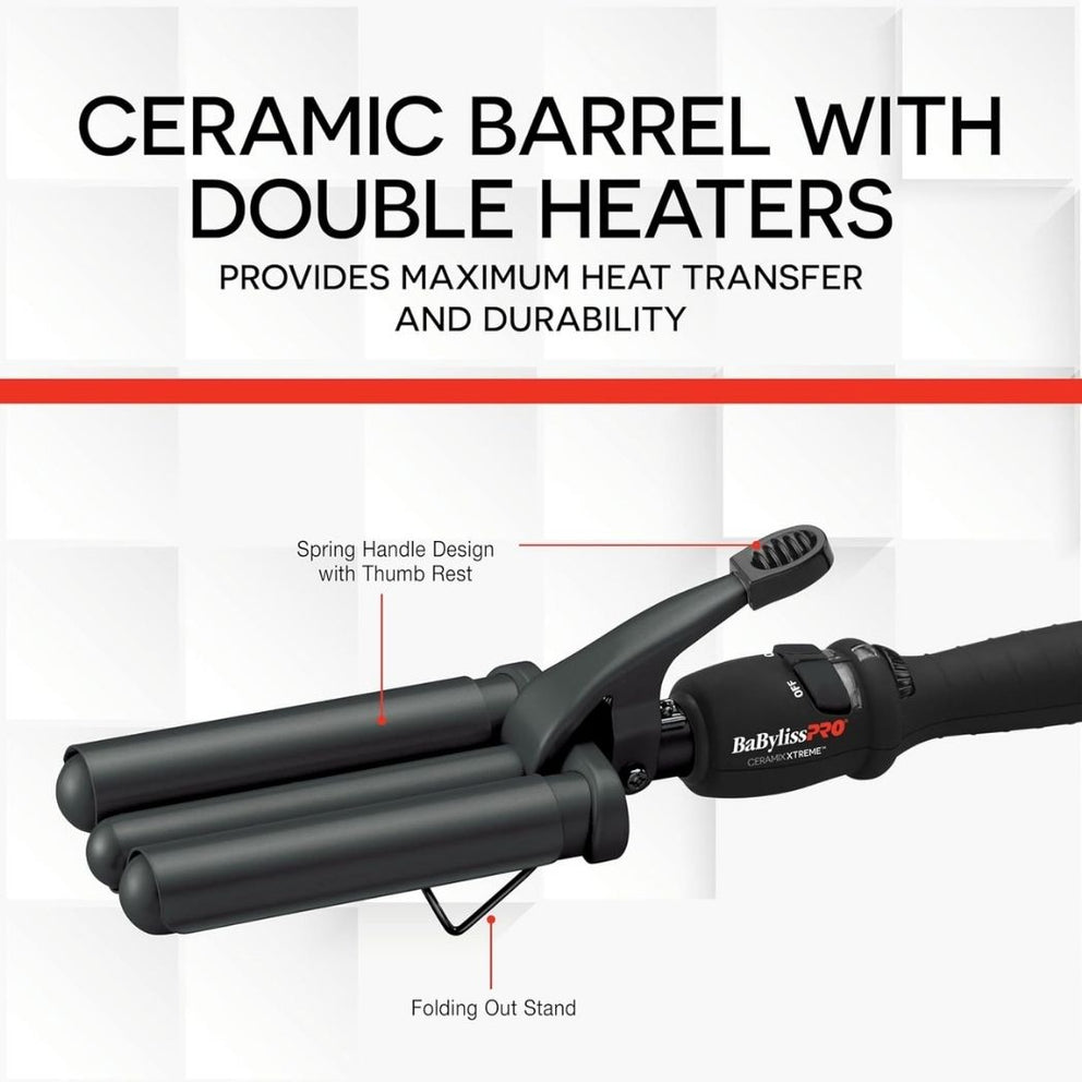 Créez des vagues profondes et spectaculaires qui donneront à vos cheveux amplement de volume, de corps et de brillance. La conception à trois tubes en céramique du fer à onduler avec poignée à ressort BaBylissPRO répartit uniformément la chaleur, éliminant ainsi les points chauds dommageables. La céramique dégage une chaleur à infrarouge lointain et émet des ions négatifs, ce qui réduit l’électricité statique et le temps de coiffage. Les barils mesurent 7/8 '' et le fer chauffe jusqu'à 383 °F (195 ºC).