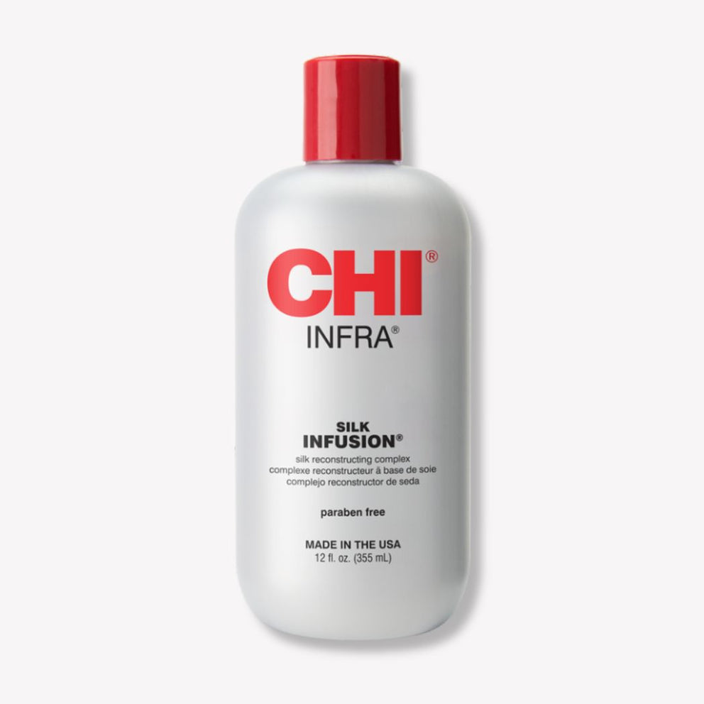 «Silk Infusion» de CHI est un riche traitement sans rinçage enrichi avec des protéines de soie, de blé et de soja qui pénètrent et aident à renforcir le cheveu, donnant ainsi aux cheveux une incroyable douceur, maniabilité et brillance sans créer de dépôts. Avantages : - Ajoute hydratation et brillance - Traitement sans alcool et sans rinçage - Enrichi de protéines pures de soie, blé et soja - Protège les cheveux des stress dus aux outils coiffants thermiques et à l’environnement - Convient à tous les types de cheveux