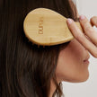 Appliquer les soins capillaires habituels, puis masser le cuir chevelu à l’aide de la brosse en bambou en effectuant des mouvements circulaires. Commencer par le front et remonter vers l’arrière de la tête, en travaillant également les tempes et le sommet du crâne par de petits cercles pour stimuler la circulation et les follicules capillaires. Ajuster la pression selon le niveau de confort, sans exercer de force excessive. Poursuivre le massage pendant 2 à 5 minutes pour une stimulation efficace, puis rincer la brosse à l’eau claire après usage et laisser sécher à l’air libre.