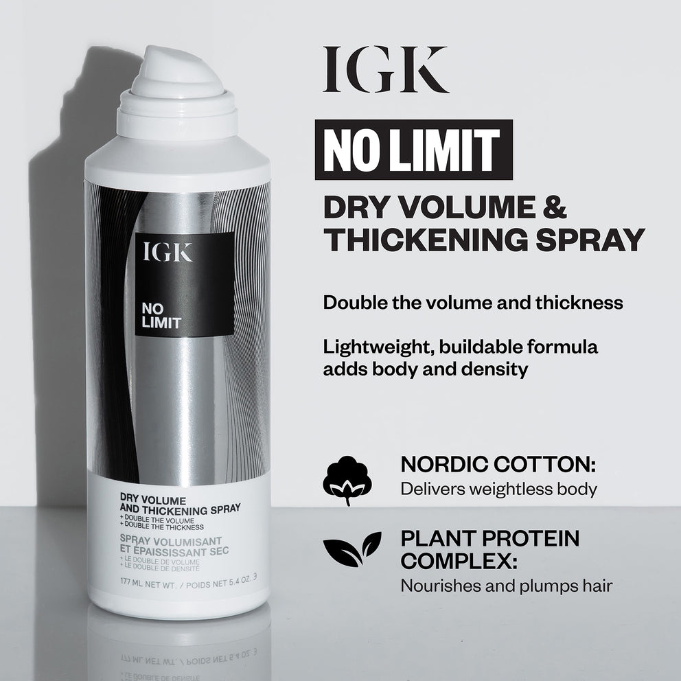 Le spray de finition volumisant et épaississant No Limit, léger comme une plume, maintient toutes les coiffures sans donner de sensation de rigidité ou de collant. Sa formule modulable permet d'ajuster l'application selon les besoins pour ajouter plus de corps et de densité, des racines jusqu'aux pointes. Il est sans danger pour les cheveux colorés et traités chimiquement, tout en offrant une protection contre les UV et en apportant un volume spectaculaire.