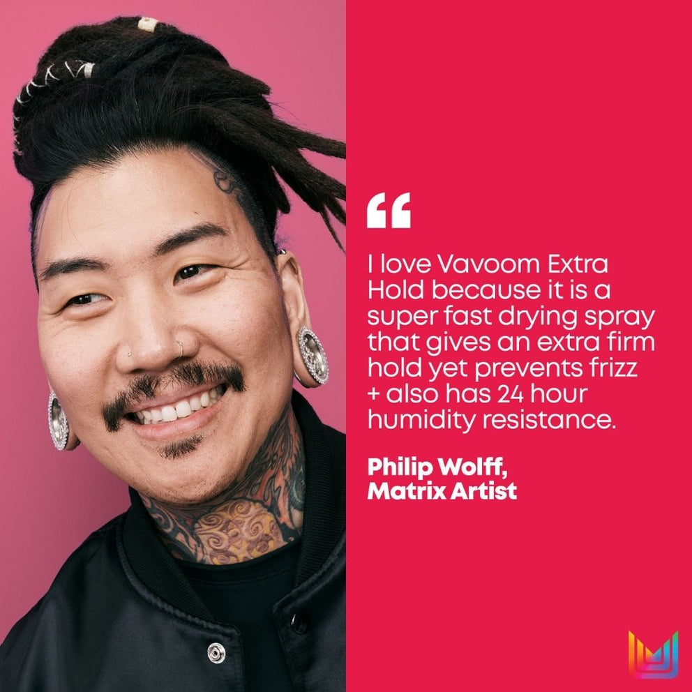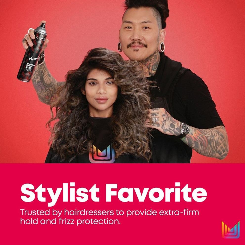Le Spray Haute tenue Matrix Vavoom offre une fixation extrêmement forte sans coller. Le spray a une vaporisation ultrafine et ultra-légère. C'est pourquoi le produit ne colle pas aux cheveux. Bien au contraire : la formule soutient les cheveux de manière invisible et offre un contrôle maximal pour chaque coiffure. La formule fine ne dessèche pas les cheveux.