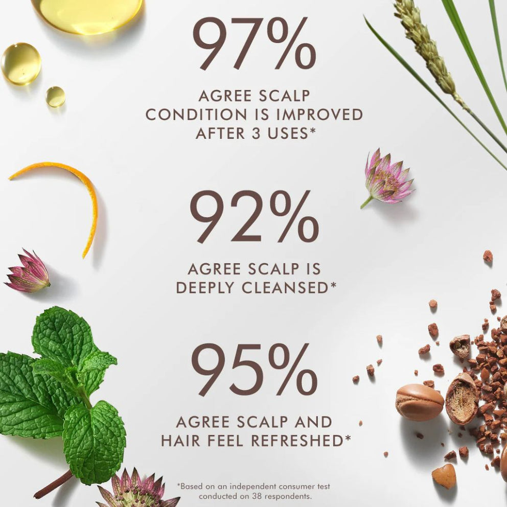 Un traitement doux à utiliser avant le shampoing qui élimine les squames, l'excès de sébum et les résidus de produits. Il laisse le cuir chevelu propre et équilibré, et les cheveux visiblement rafraîchis, plus légers et plus volumineux.