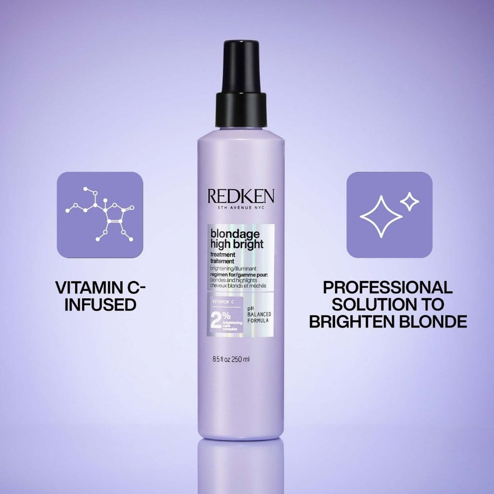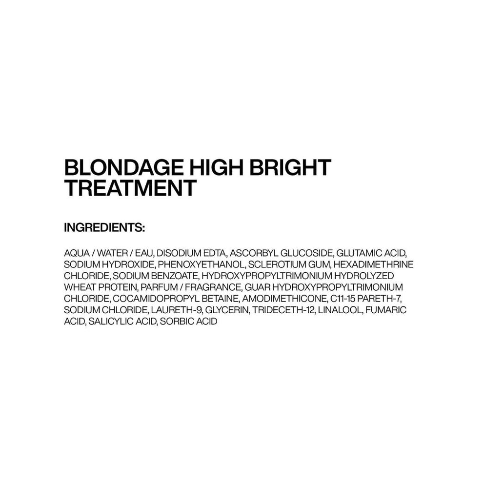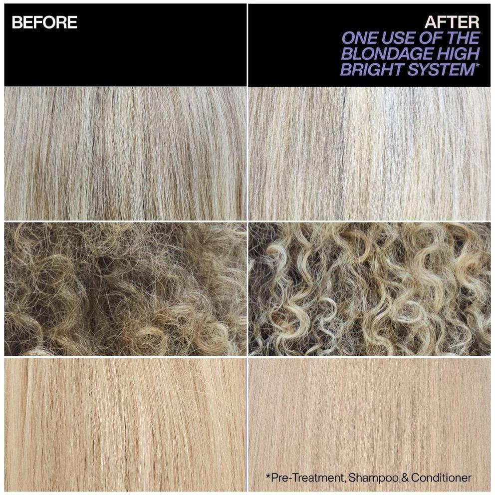 Utiliser comme un régime complet avec le système Blondage High Bright. Appliquer le traitement pré-shampoing Blondage High Bright sur les cheveux mouillés, peigner et laisser agir 5 à 10 minutes. Après utilisation, poursuivre avec le shampoing et le revitalisant Blondage High Bright.